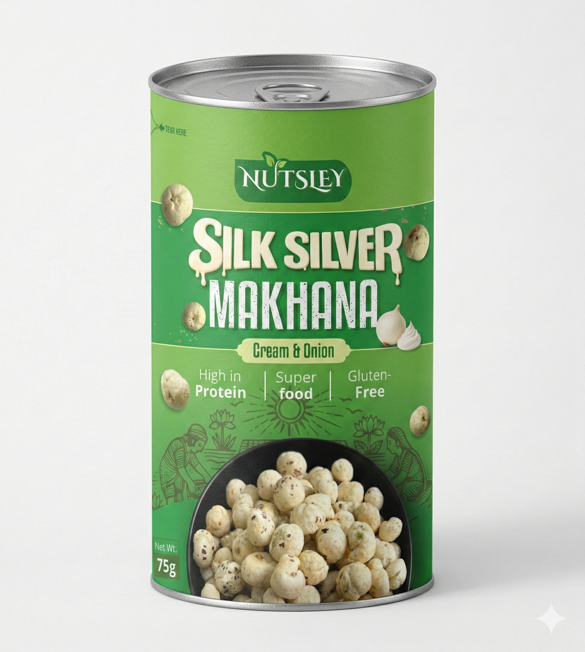 Nutsley Silk Silver Cream & Onion Makhana 75g Can